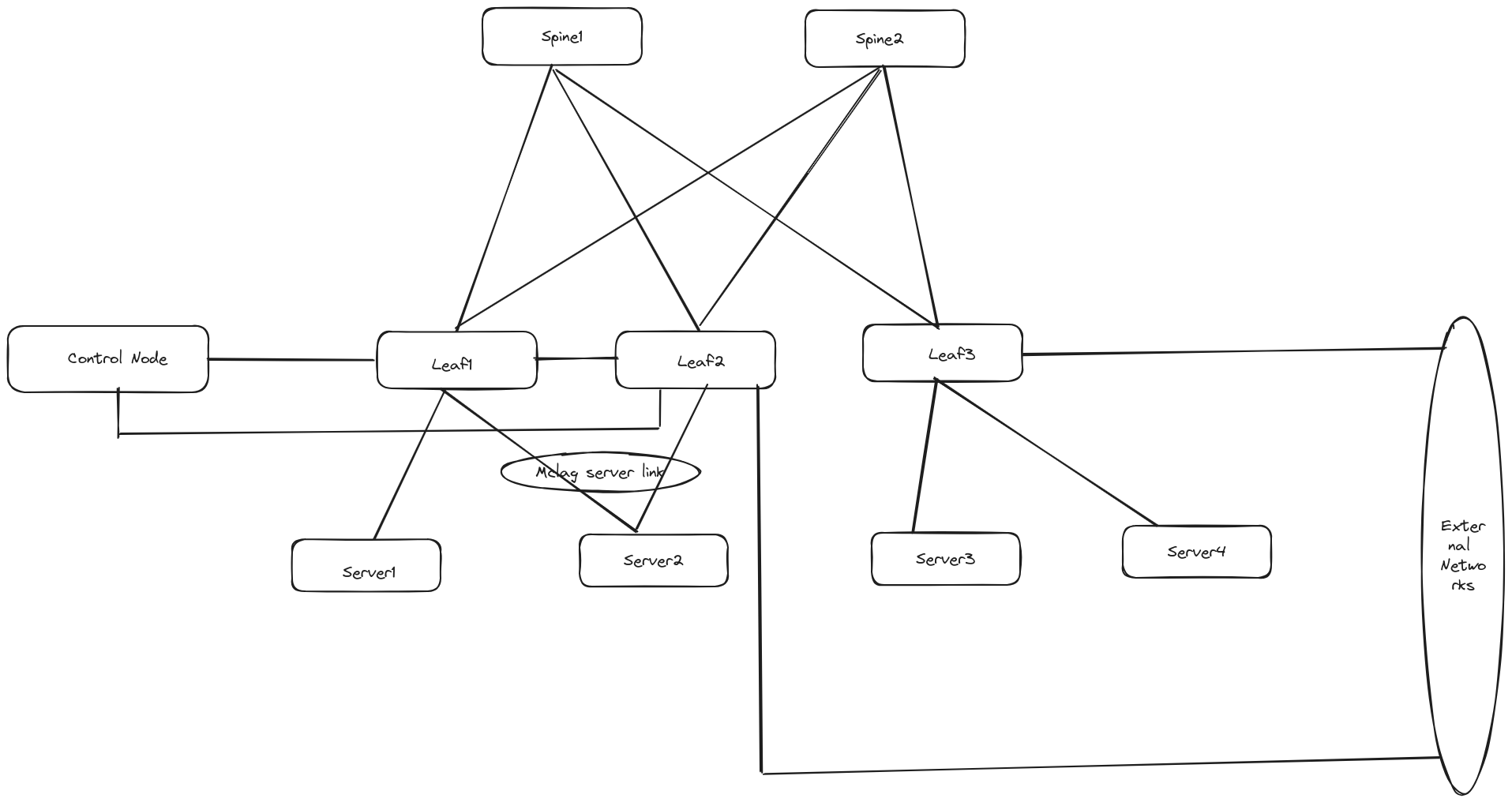 This kind of topology is useful for bigger deployments and provides all the advantages of a typical Clos network. The underlay network is established using eBGP where each leaf has a separate ASN and peers will all spines in the network. RFC7938 was used as the reference for establishing the underlay network.